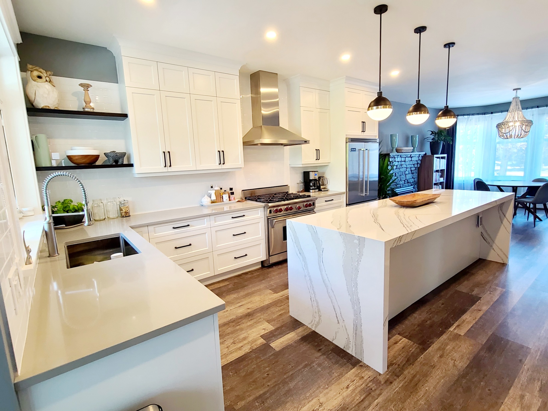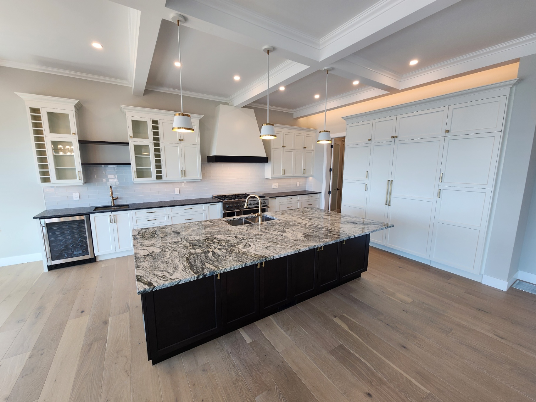 Perfect backdrop for statement backsplashes, countertops, and hardware